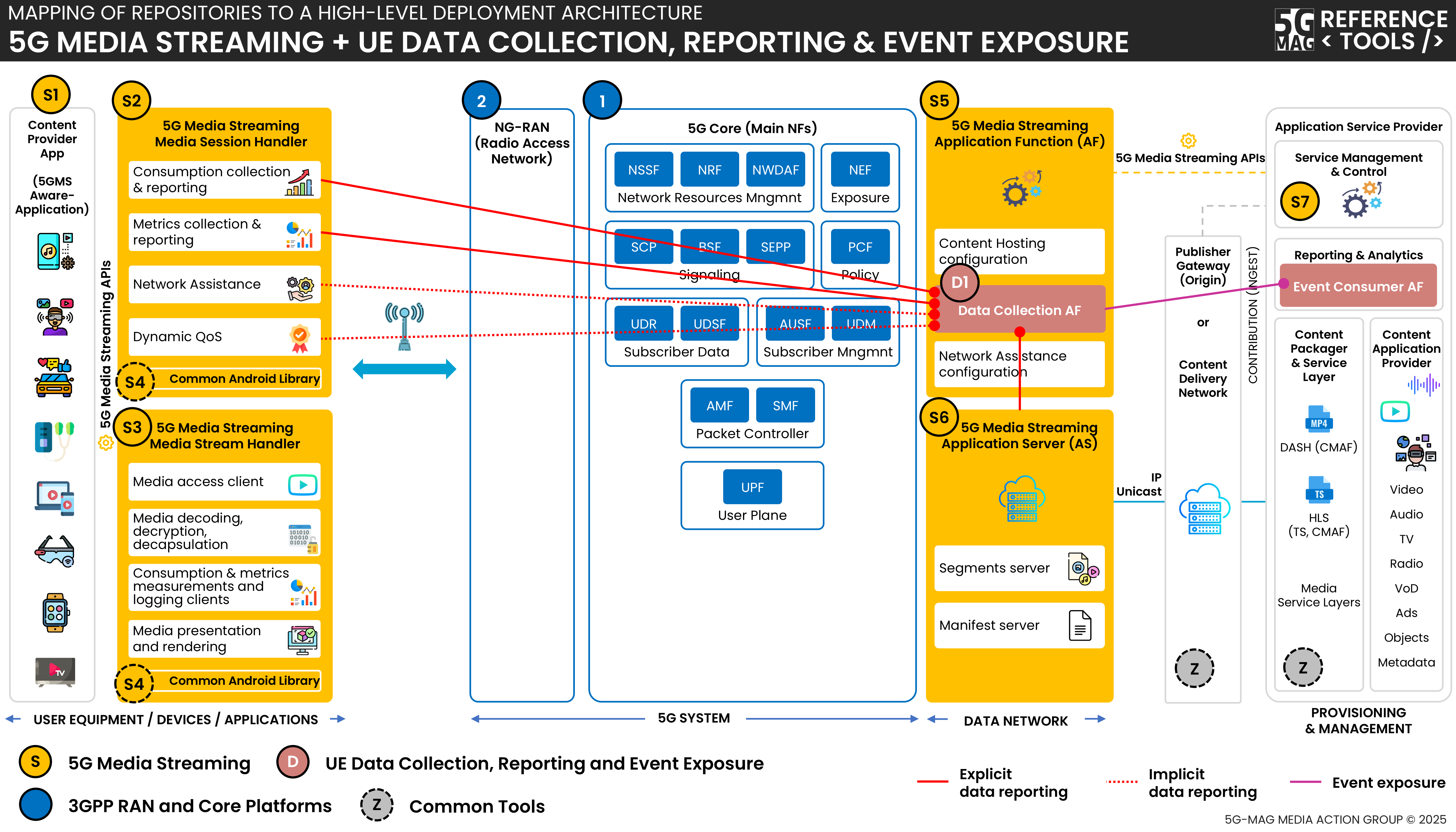 5G Downlink Media Streaming (5GMSd) with UE Data Collection Reporting and Event Exposure