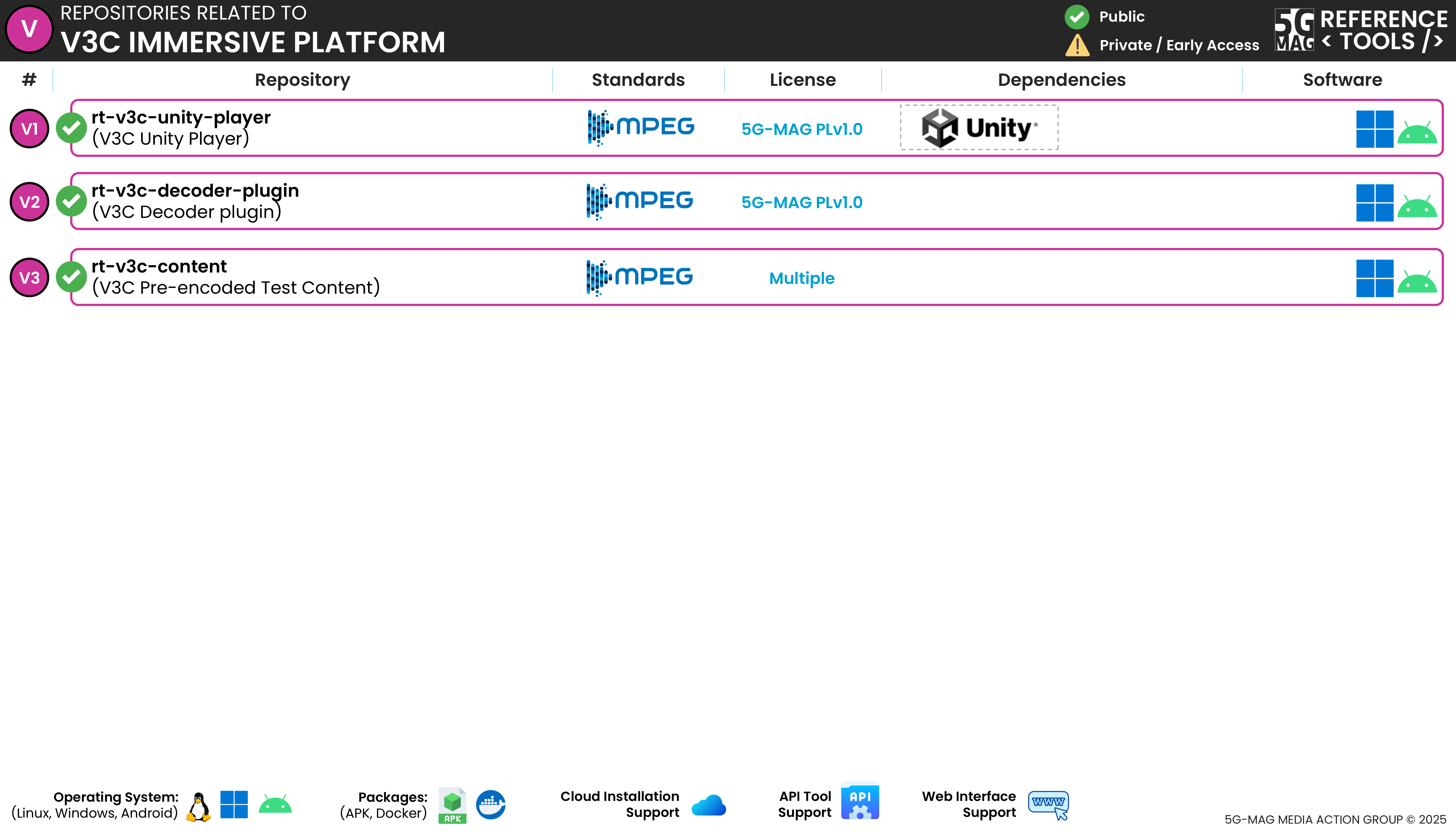This project contains the entrypoints for decoding and viewing MPEG Immersive Video (MIV) and Video Point Cloud Compression (V-PCC) related to the V3C Immersive Platform.