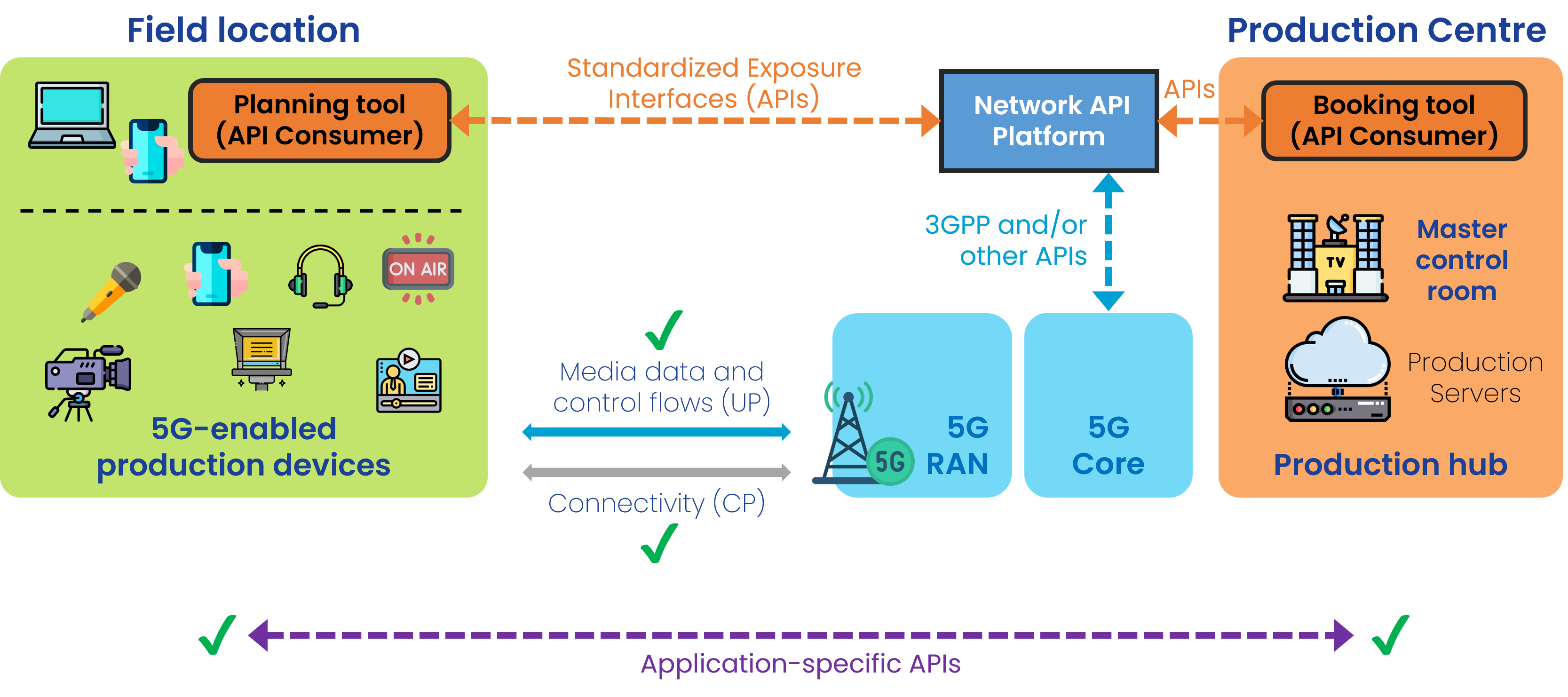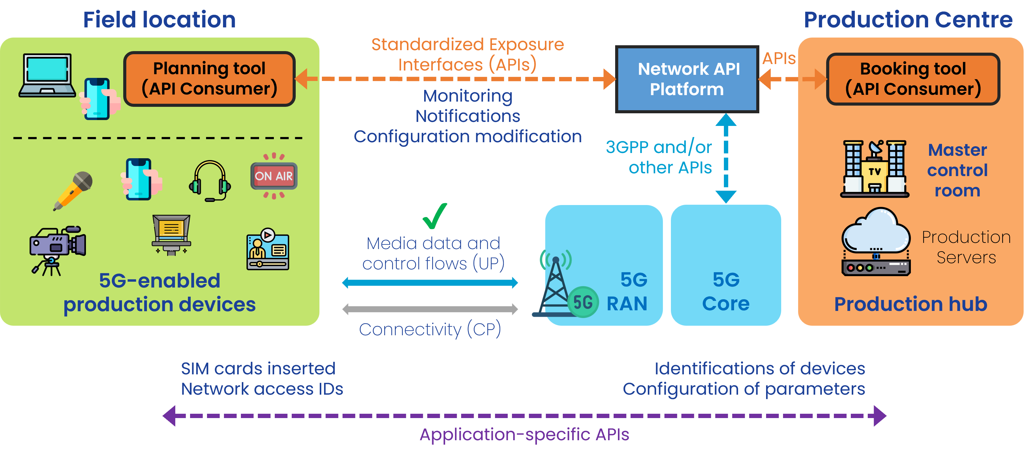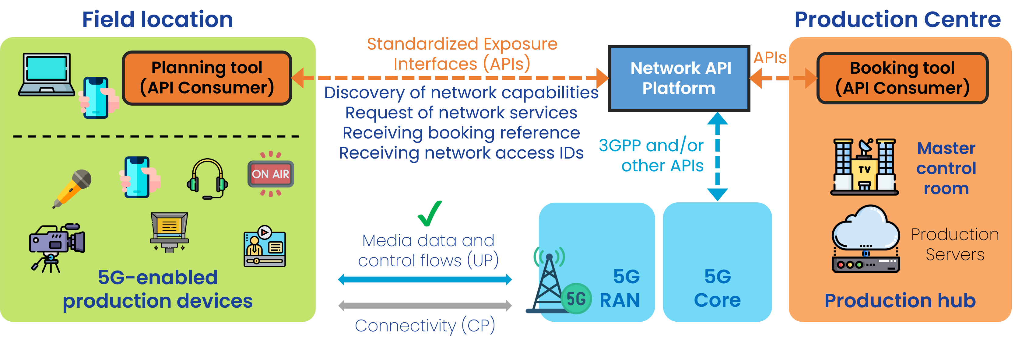 - Through the Network API Platform, the production crew (on location or located in the production centre) can discover the capabilities the network can offer in a particular location and at a particular time (for which the production company is eligible for).